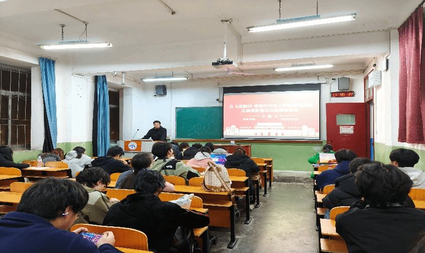 2025年12月7日晚,星空体育官方网站以各班晚点评教室为阵地,开展大学生征兵宣传主题活动,以电影《战狼二》热血内核为切入点,点燃学子携笔从戎热情,引导青年学子在军营中践行青春使命。