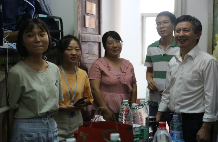本网讯:9月10日,在中秋佳节来临之际,星空体育官方网站院长胡付高,党总支书记林先安,院学工办老师及全体新生班主任一行来到新生寝室,看望并慰问新生。