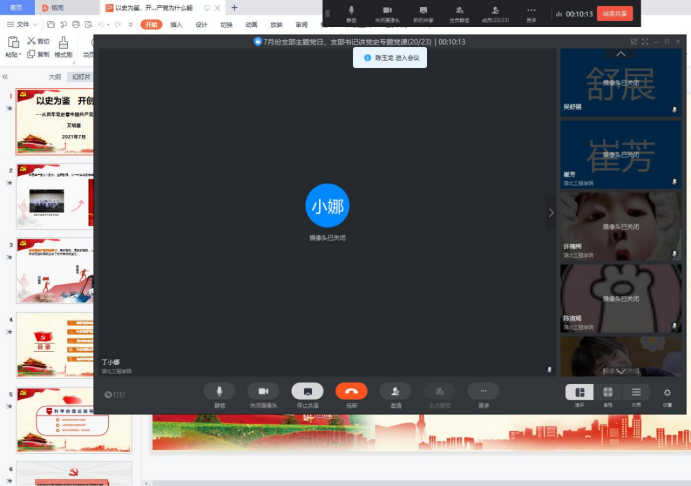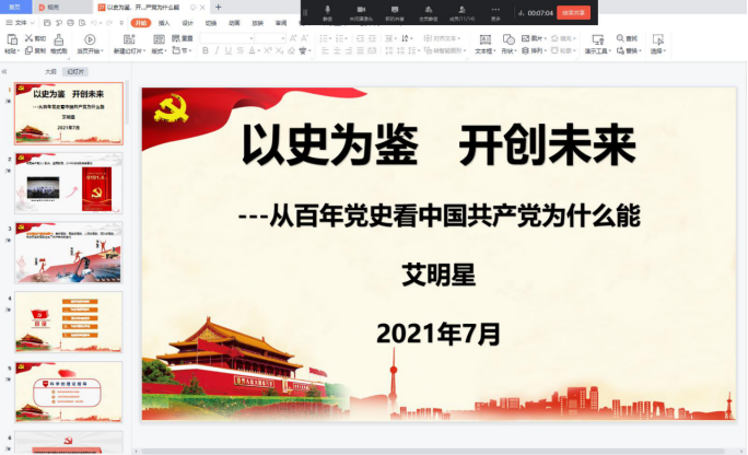 7月13日中午,星空体育官方网站学生党支部以钉钉会议的形式开展“支部书记讲党史专题党课”暨7月份支部主题党日活动,全体学生党员参加了会议,会议由吴舒展同志主持,党总支副书记艾明星为全体学生党员讲“以史为鉴 开创未来——从百年党史看中国共产党为什么能”专题党课。
