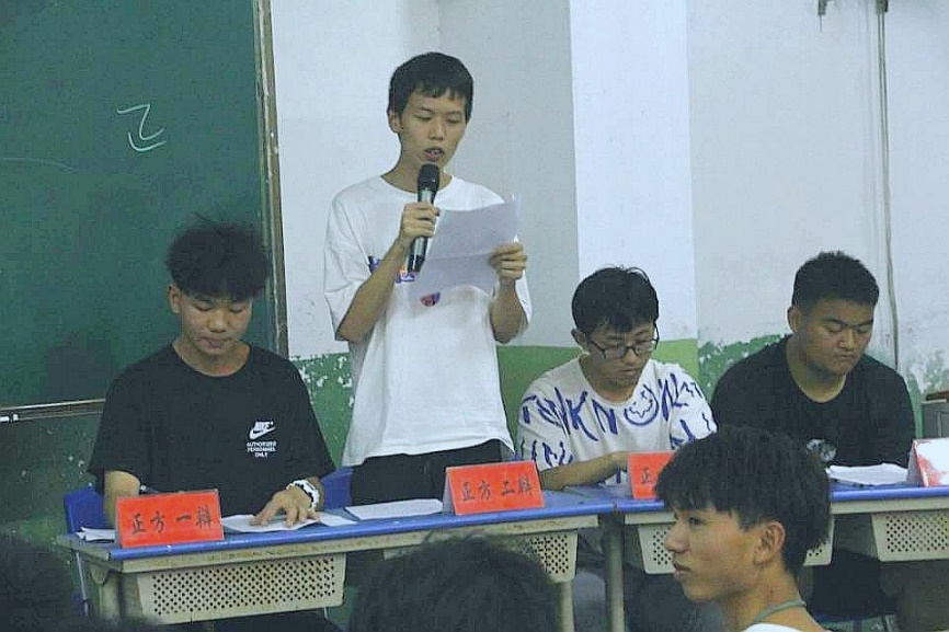 为了丰富同学们的校园生活,活跃校园气氛,促进星空体育官网学生之间的友好关系,提高同学们的辩论水平、语言组织能力和逻辑思维能力,体现大学生风华正茂的精神状态,6月5日晚19点30分,星空体育官网在教一210教室举行了一场辩论表演赛。