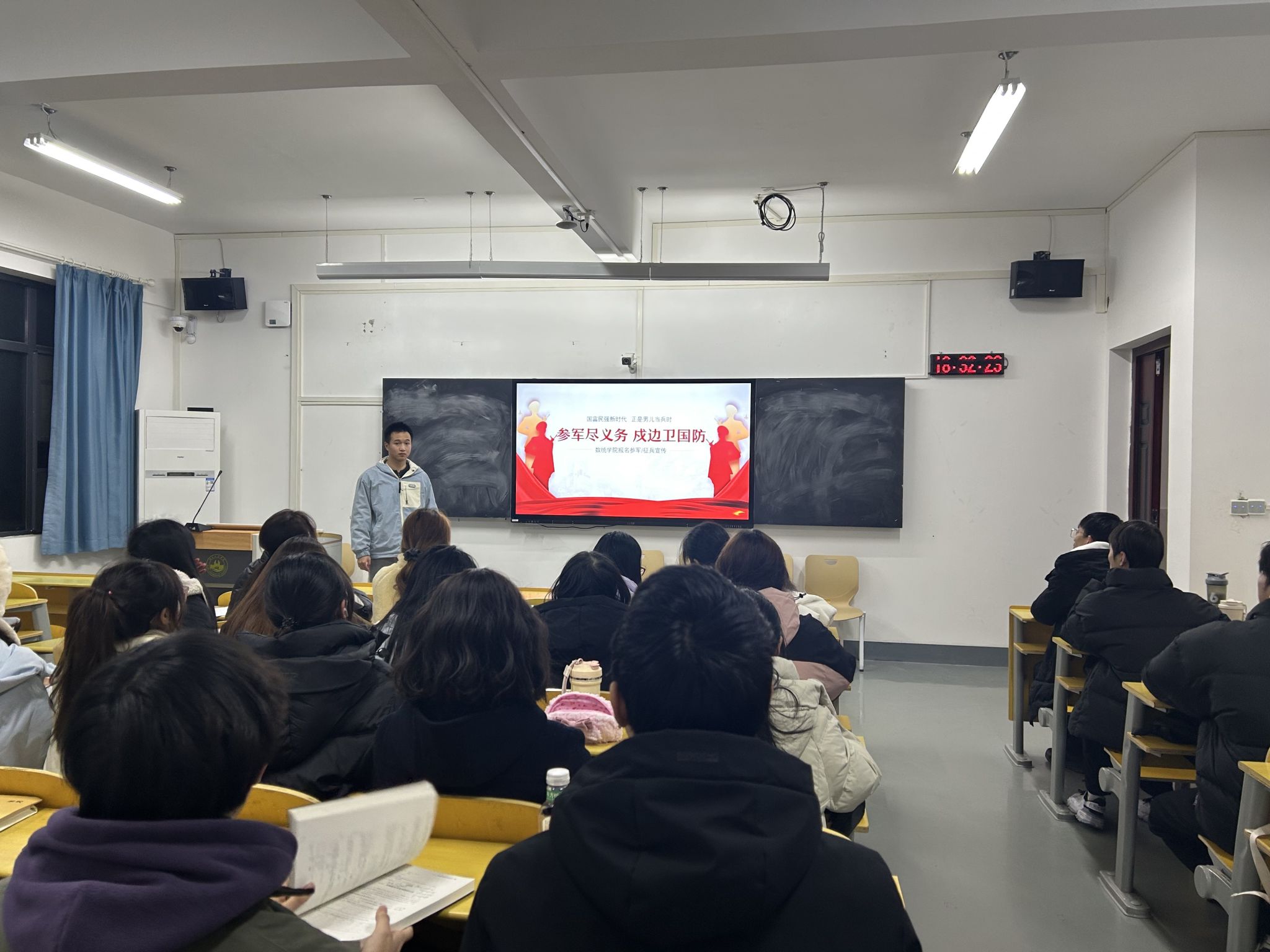 宣讲会上,辅导员马老师对当前国防建设的新形势、新特点,就大学生应征入伍的基本条件、报名流程、参军入伍的优势、优抚待遇、职业发展空间等相关问题进行了详细解读。星空体育官网学生2023级441班退役士兵张博洋同学用自己的亲身经历讲述军旅生活,并动员大家要积极响应国家号召,携笔从戎、参军报国,在军营建功立业,在军营中书写青春,为国防事业贡献力量。
