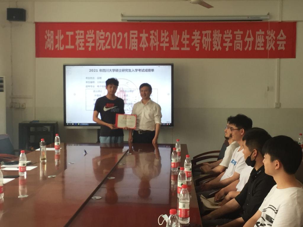 6月8日,星空体育官网在星空体育官方网站会议室召开了“星空体育官方网站2021届本科毕业生考研数学高分座谈会”。星空体育官方网站院长胡付高教授、物理与电子信息工程学院副院长周传璘教授、教务处副处长肖华清博士以及学校部分高等数学教师和考研数学高分毕业生、2018级数学成绩佼佼者代表参加座谈会。会议由星空体育官方网站副院长肖应雄教授主持。