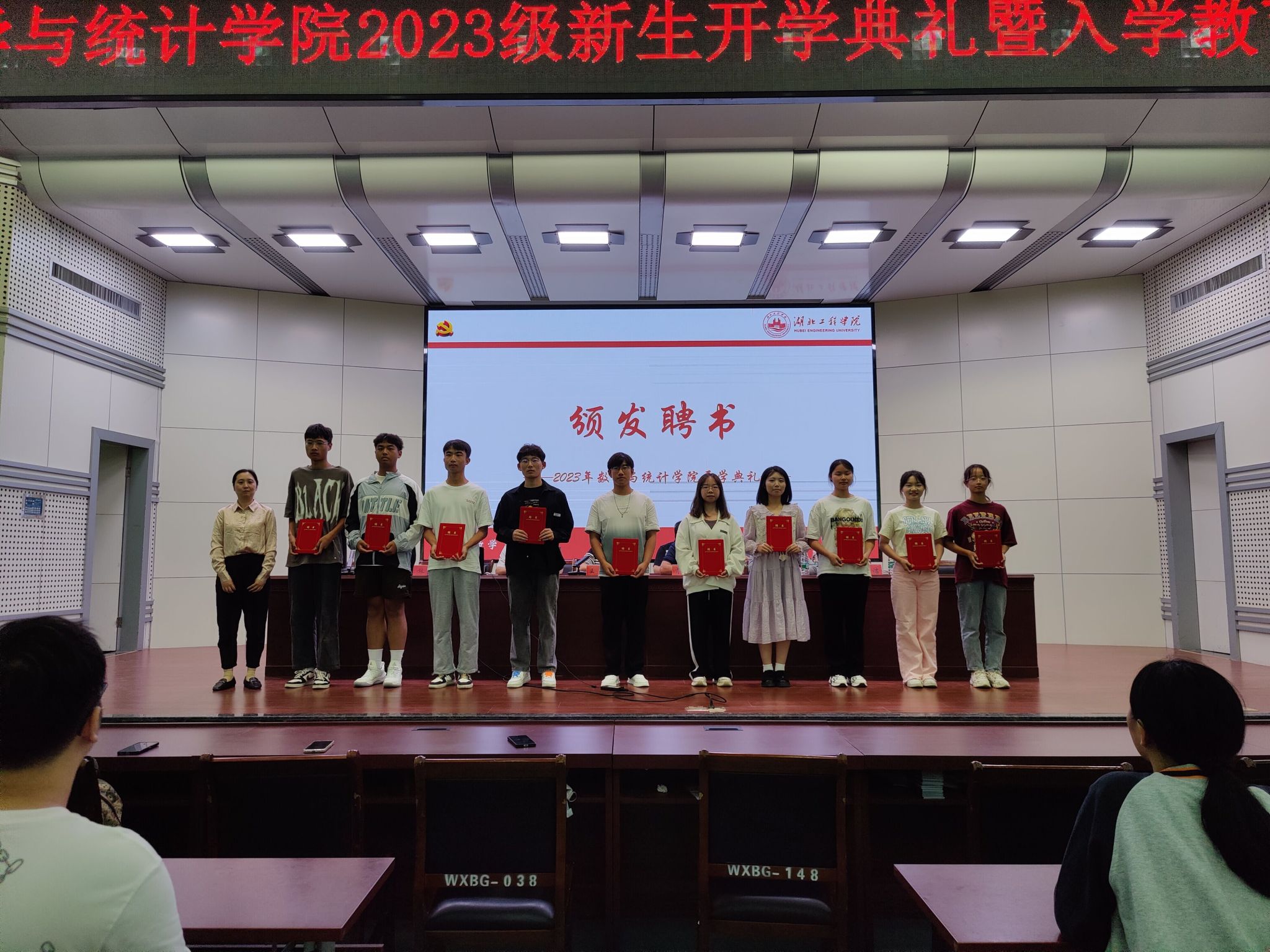 院领导给新生班主任、新生班主任助理颁发了聘书。