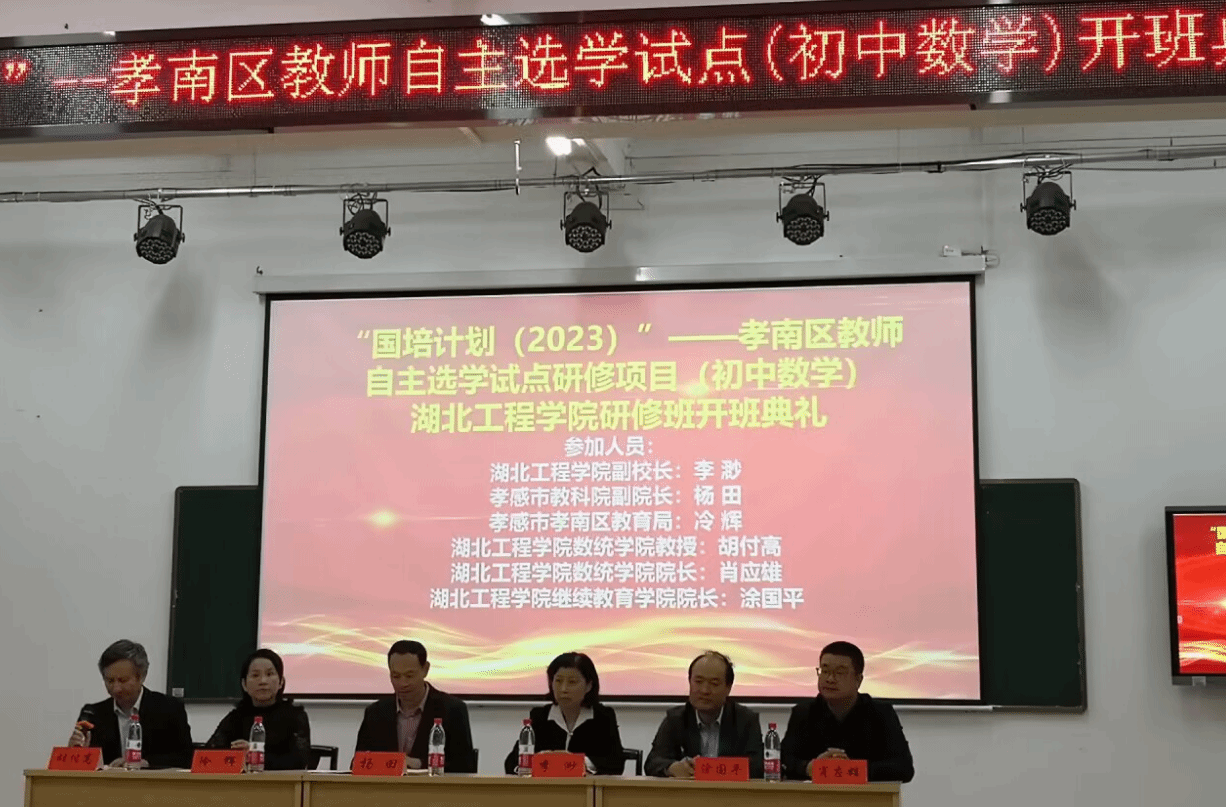 2023年11月1日上午,国培计划(2023)”——孝南区教师自主选学试点研修项目(初中数学)在星空体育官方网站隆重开班。星空体育官方网站副校长李渺、孝感市教科院副院长杨田、孝南区教育局冷辉、继续教育学院院长涂国平、星空体育官方网站院长肖应雄出席典礼。项目负责人胡付高教授主持典礼。来自孝感市孝南区各中学的100名数学骨干教师参加了开班典礼。