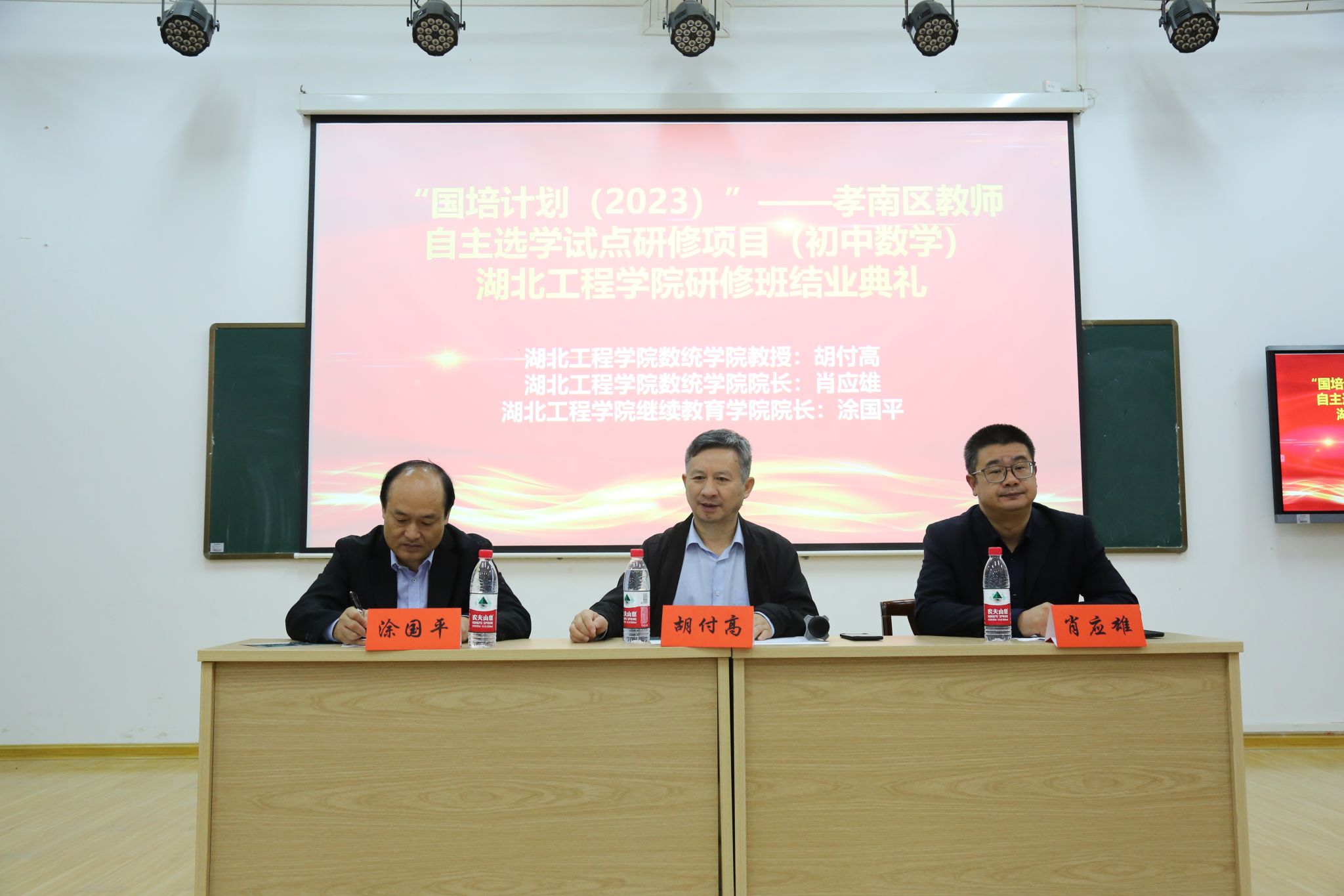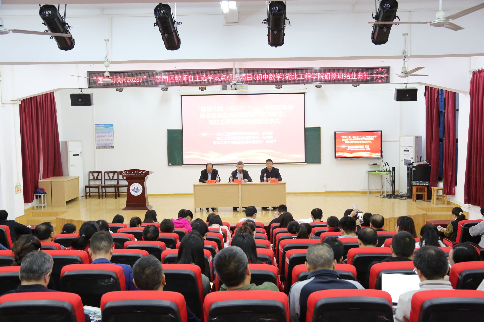 2023年11月5日,“国培计划(2023)”——孝南区教师自主选学试点研修项目(初中数学)星空体育官方网站培训班结业典礼在教育与心理学院报告厅隆重举行。星空体育官方网站院长肖应雄、继续教育学院院长涂国平以及来自孝感市孝南区各中学的99名国培学员参加典礼。项目负责人胡付高教授主持典礼。