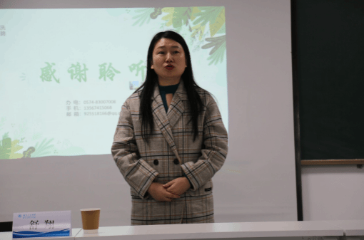 随后,舒翔学长的爱人吕冰学姐也从自己从事外贸工作的三个小故事分享人生经验。她说有“国”才有“家”,要有家国情怀,要学会面对挫折、学会与人合作、学会知恩图报。